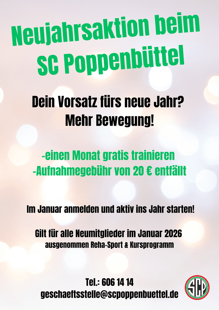 Werden Sie Mitglied bei uns! Egal, ob groß oder klein, ob alt oder jung – der SC Poppenbüttel von 1930 e.V. bietet ein vielfältiges Sportangebot für jeden, der Lust auf Sport hat.