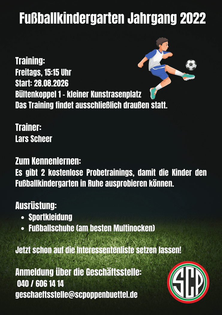 Werden Sie Mitglied bei uns! Egal, ob groß oder klein, ob alt oder jung – der SC Poppenbüttel von 1930 e.V. bietet ein vielfältiges Sportangebot für jeden, der Lust auf Sport hat.