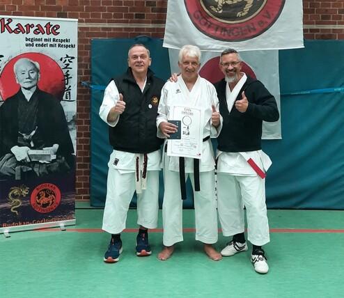 Jubiläumslehrgang in Henstedt Ulzburg mit Anschlessender Prüfung. In iner langen Prüfung setzte Til-Ole sich durch und bestand den nächsten Kyu